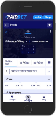 Paidbet স্পোর্টসবুকে লাইভ বেটিং এর অপশন রয়েছে তবে এর জন্য মেইন মেন্যুতে আলাদা কোন ট্যাব নেই। আপনি স্পোর্টস মেন্যুতে গেলে সেখান থেকে আলাদাভাবে লাইভ মার্কেটগুলো দেখতে পারবেন।
